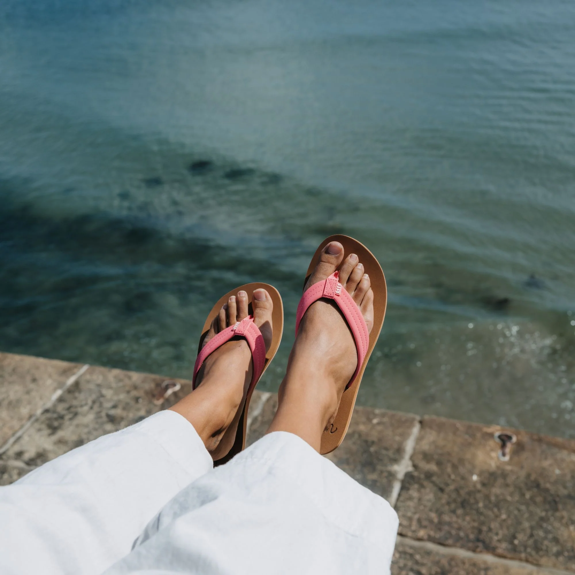 - PVC free Synthetic padded straps with a water friendly TPR logo and 100% recycled PET webbing lining and toe post.